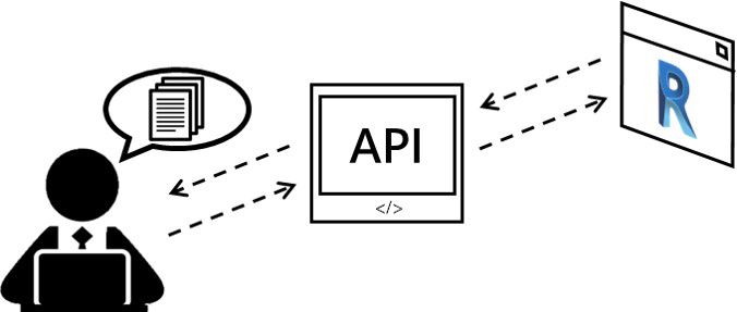 Revit API是Revit提供予使用者的應用程式函式庫,聽不懂?沒關係!讓我們來用一個例子來比喻一下,簡單來說Revit就像是一間餐廳,Revit API就像是餐廳裡的服務生,我們可以通過跟服務生說我們想吃什麼來向餐廳點菜。而服務生就會幫我們跟餐廳說我們需要什麼,並拿來給我們。所以其實Revit API就是一個傳遞我們需求的角色,幫助我們與Revit做資訊上的傳遞(如圖一所示)。