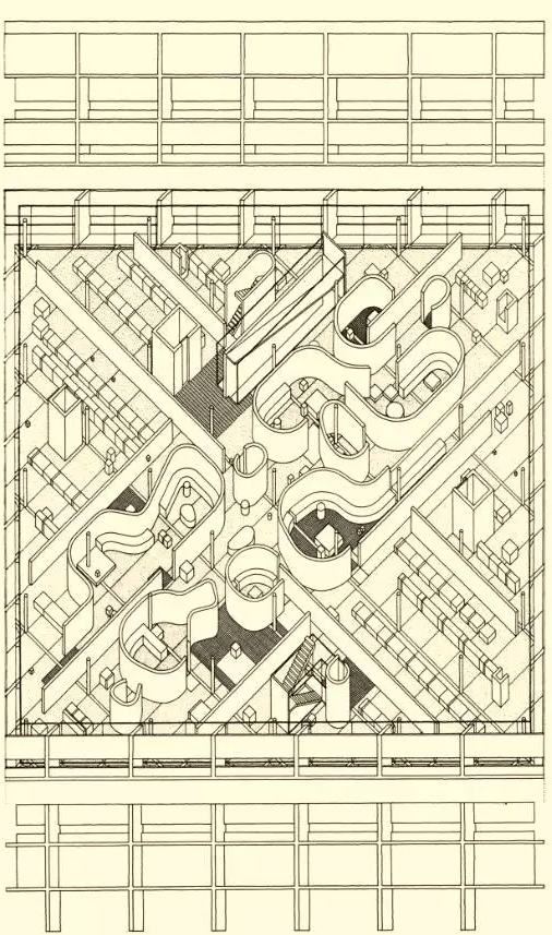 如今的多數建築師仍基於 16 世紀以來的剖切-投影圖工作,同時沿襲著現代主義的傳統 — 主設計介面多預設為平面圖(規範的工程圖紙排序將總平面和平面圖放在整套圖紙前面)。關於這種繪圖術選型的優勢,前文已述,這裡我們主要審視其缺陷和盲點。