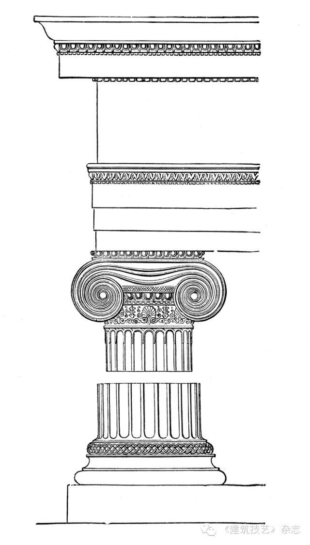 在古希臘的模型製作中,模型總是比目標建築縮小許多倍的。從幾何學上,這是相似形原理,簡言之,希臘建築美學的「比例」體系就是一套以相似形比例控制而不限定尺度的美學法則,這與建築師從推敲小尺度模型開始到完成等比例的大尺度建築的工作過程不無關聯。在有限的比例控制下,不僅方便模型的製作和推敲,同時也有利於建築要素的規格化製作。這是一套極具優勢的建築法則,從古希臘時代創生的多立克、愛奧尼和柯林斯三種柱式,古羅馬時代增加了塔斯干柱式,文藝復興時代增加了組合柱式,五柱式的法則在古典主義語境下沿用至今,這或許是最早的也是貫徹最長久的「標準化」體系了(圖 28)。