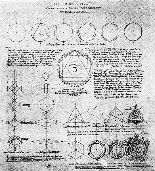 這種形式表達多樣化的傾向,似乎又與前面討論過的由電腦製圖特徵導致的形式偏好相矛盾 — 其實,這是一個非常古老的問題,拋開古典主義的控制線不談,近在19世紀末,路易士·沙利文就通過「無機」的幾何演算來生成「有機」的自然圖形,希望由此追尋自然形式的理性原則,這裡已經蘊涵了典型的「參數化」思想(圖 20)。在沙利文的時代,這種做法充滿哲學意味,但在電腦製圖的時代,參數化不僅彌補了電腦製圖的短板,還在有理化的同時極大地拓寬了形式類型。
