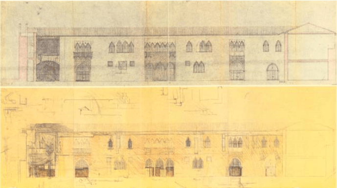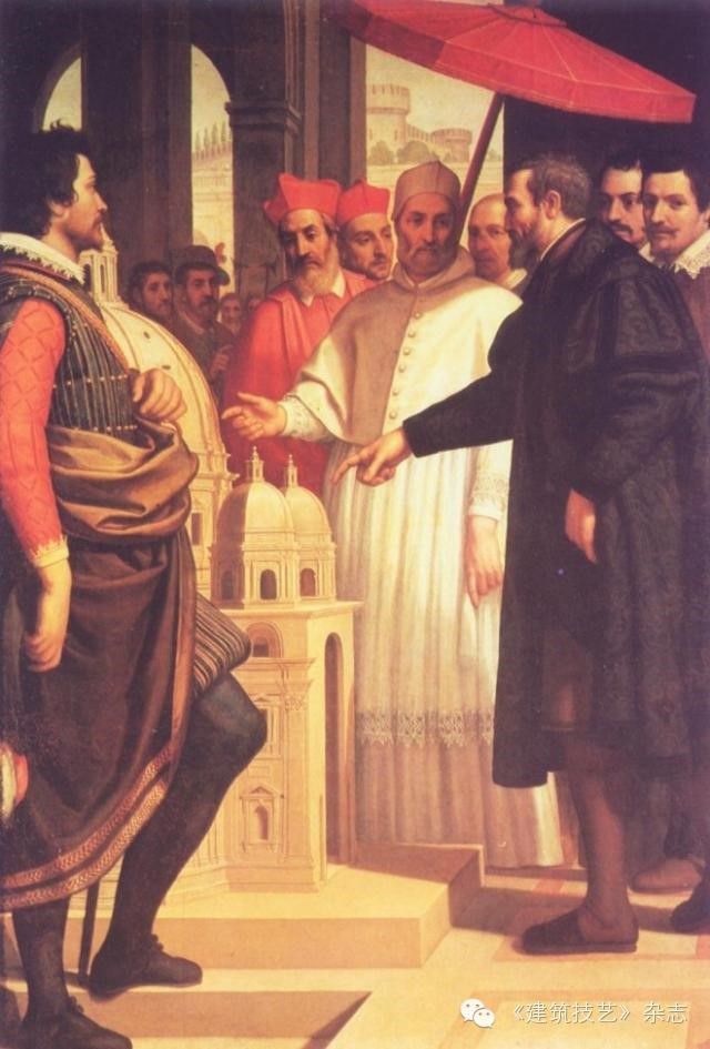 可以說,正是繪圖術的出現才催生了現代意義上的建築師行業。人類真正系統地以繪圖作為傳達、闡釋建築設計意圖的手段是從 16 世紀的人文時代開始的。一方面,如阿爾伯蒂、塞利奧、帕拉第奧等大師仍沿襲著維特魯威「十書」式的寫作;另一方面,伯魯乃列斯基將透視法科學化了,藝術家們終於得以通過圖紙來精確地推敲空間和形體的視覺呈現,而瓦薩里在佛羅倫斯創立的藝術設計學院則將系統的繪圖術普及開來,並藉此將建築學的思想層面從匠人的手工傳統中解放出來(圖 1)。
