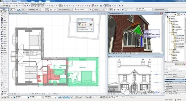 對於前文所提到的設計力量投放不均的問題:隨著行業規則的不斷豐富、完善,各類投影圖都有著明確的深度標準,從某種程度上均衡了分配在不同視圖介面上的設計力量;從管理上,技術分工的進一步細化讓許多從業團隊有機會分派不同的設計師分別執行平面和立面的設計,這也有效地通過團隊配合緩解了由主介面選擇所帶來的對其他介面的漠視。但問題也隨之而來 — 在各介面上分別執行的設計趨於離散,同一設計要素被繪製在不同的視圖中,甚至被不同的人分別設計,許多建築師對設計的推敲僅對特定的視圖負責,不同視圖間的對應關係通常僅能通過「對圖」來保障。隨著設計在各介面上的不斷推進、深化和修改,通過對圖或經驗來維繫的對應會越來越脆弱,「不交圈」的問題幾乎成為必然。