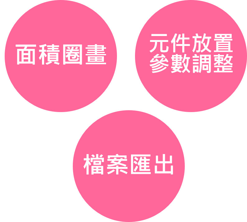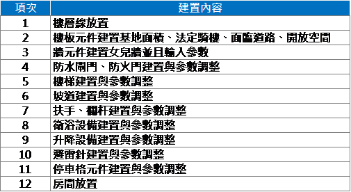 Step2 BIM建置:這個階段的作業主要區分為三個部分:元件放置與參數調整(包含專案資訊基本參數輸入)、面積圈畫、檔案匯出。